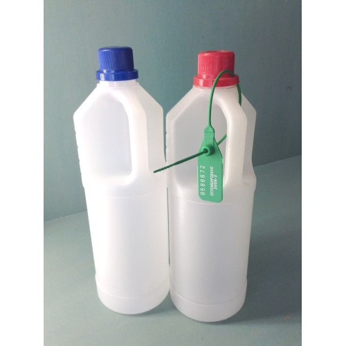 Возможно устанавливать пломбу через контрольное кольцо колпачка и под ручку бутыли.